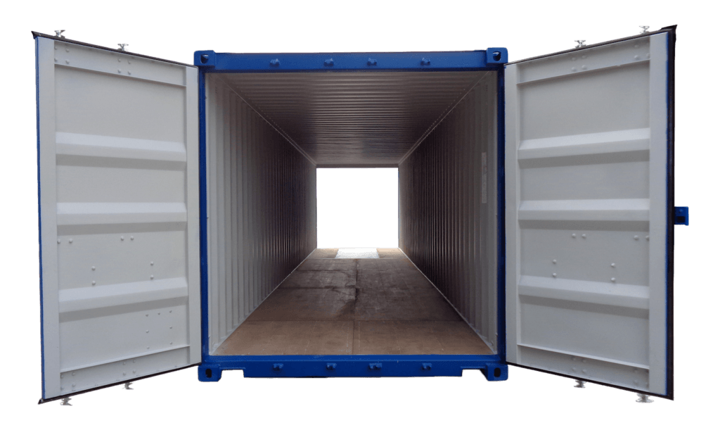 Container da 40 piedi "Primo Viaggio" con porte su entrambe le estremità. Già equipaggiato con lockbox, tasche muletto e pavimento marino a 19 strati. Massima efficienza e durata.