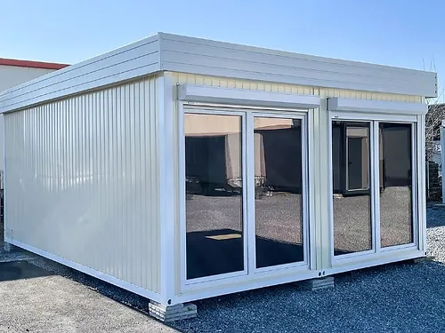 Ufficio modulare da 20 piedi di qualità superiore. Con struttura certificata, isolamento termico avanzato e vetri di sicurezza anti-UV e antieffrazione. La soluzione professionale pronta all'uso.