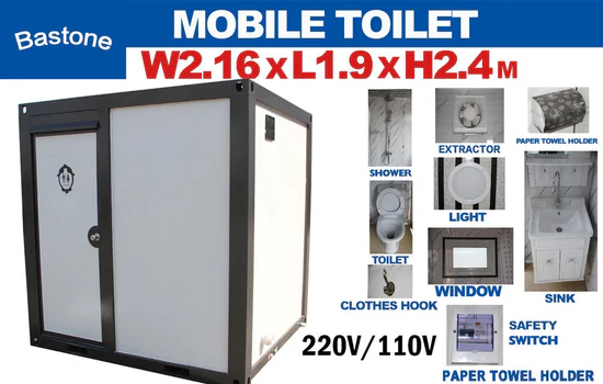 Il bagno portatile Bastone con doccia è la soluzione perfetta per campeggiatori e attività all’aperto. Questa struttura mobile autonoma combina funzionalità multiple in un unico prodotto: WC, lavabo e doccia. Il design interno moderno rende l’utilizzo piacevole e confortevole, mentre la struttura compatta ne facilita il trasporto e l’installazione. Con una semplice alimentazione a 110V, una connessione idrica e una fossa settica per la gestione dei rifiuti, questo bagno portatile è la scelta ideale per eventi all’aperto o cantieri.