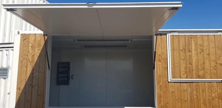 Con i suoi 27 m² di superficie utile, questo modulo di tipo Snack-BOX permette un’organizzazione interna versatile, adattabile a diversi concept di business. Grazie all’isolamento termico integrale e all’impianto elettrico certificato, fornisce un ambiente di lavoro confortevole, sicuro e pronto all’uso in qualsiasi stagione.