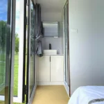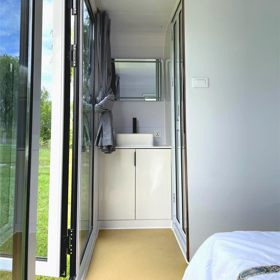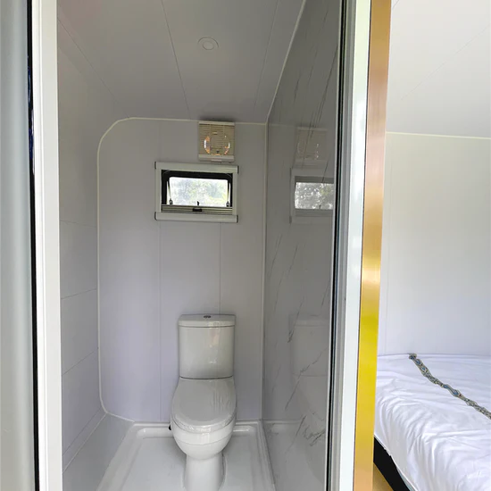 Il piccolo cube prefabbricato Bastone da 13 piedi combina design moderno e praticità, offrendo uno spazio compatto ma completamente funzionale. Dotato di illuminazione LED, prese elettriche, opzioni di stoccaggio e una sala da bagno privata con doccia, è perfetto per esigenze residenziali o commerciali. Progettato per adattarsi a qualsiasi ambiente, questo cube prefabbricato è una soluzione elegante e resistente per la vita moderna.
