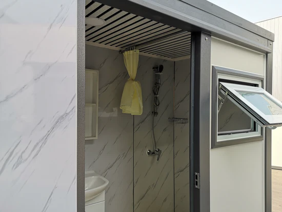 Il bagno portatile Bastone con doccia è la soluzione perfetta per campeggiatori e attività all’aperto. Questa struttura mobile autonoma combina funzionalità multiple in un unico prodotto: WC, lavabo e doccia. Il design interno moderno rende l’utilizzo piacevole e confortevole, mentre la struttura compatta ne facilita il trasporto e l’installazione. Con una semplice alimentazione a 110V, una connessione idrica e una fossa settica per la gestione dei rifiuti, questo bagno portatile è la scelta ideale per eventi all’aperto o cantieri.