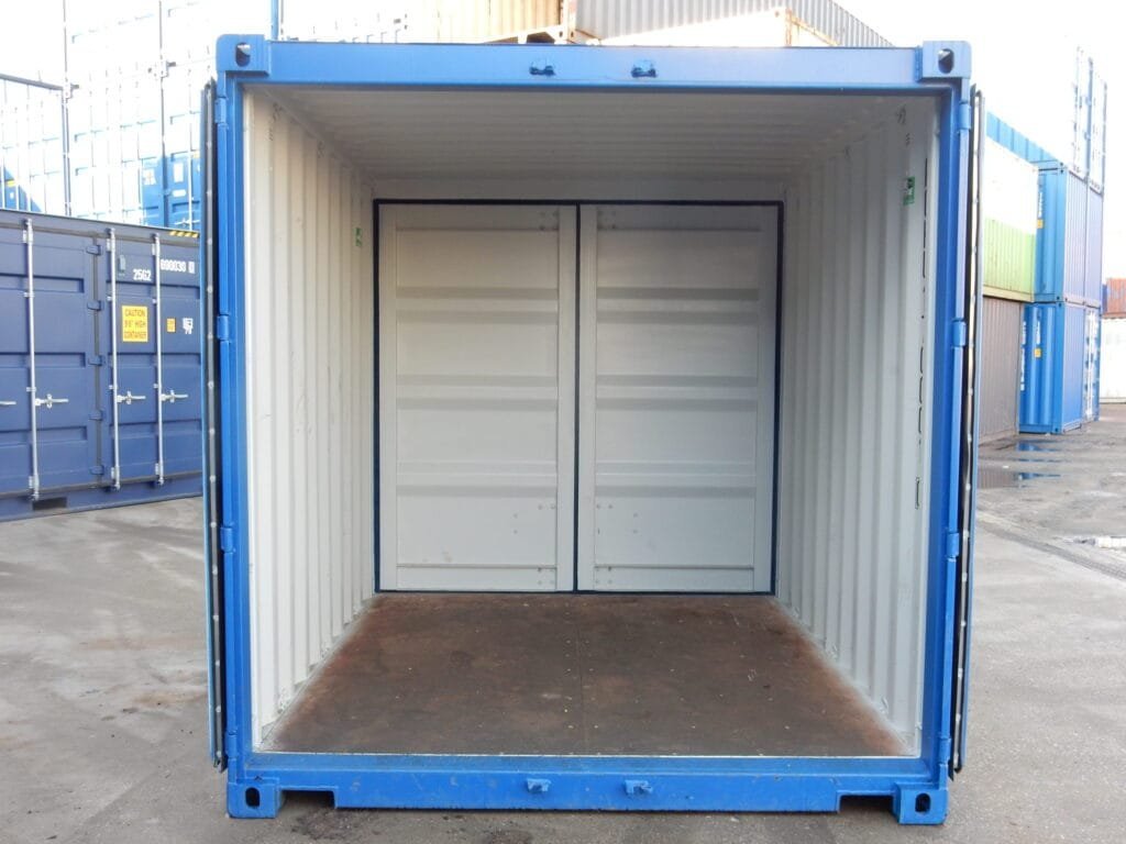 Container da 10 piedi “Primo Viaggio” con porte su entrambe le estremità. Già equipaggiato con lockbox e tasche muletto. Massima efficienza e sicurezza.