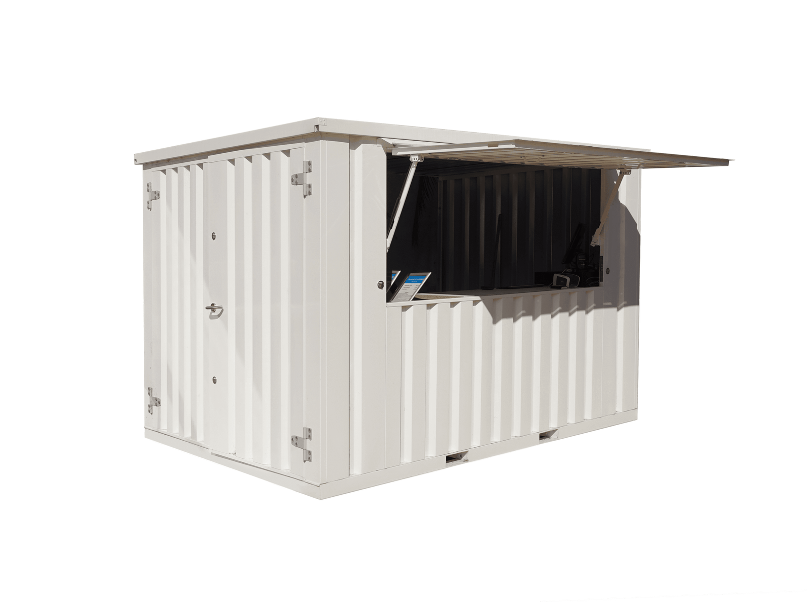 - Ampio portellone a ribalta sul lato lungo che funge da bancone e tettuccio.