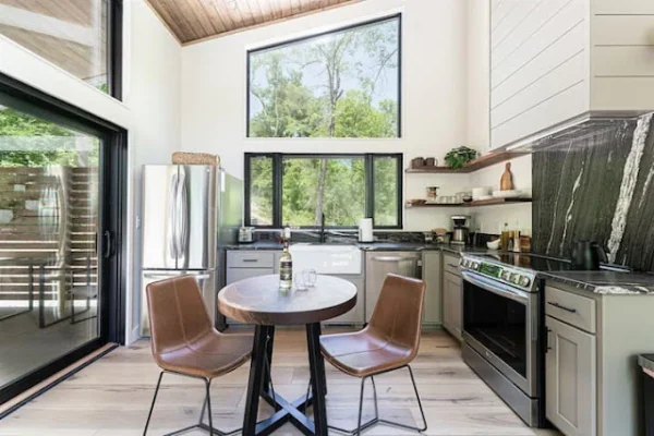 La Maison T1 CARPA 44m2 è una dimora contemporanea che offre un’esperienza abitativa unica. Il design elegante e gli ampi spazi luminosi, grazie alle grandi finestre, creano un ambiente sereno e accogliente, perfetto per chi cerca comfort e relax a contatto con la natura.