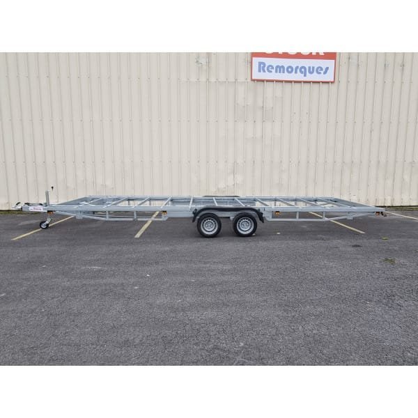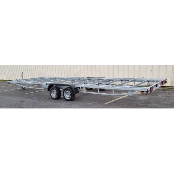 Questo robusto rimorchio da 7,2 metri a doppio asse è la base di partenza ideale per costruire la tua Tiny House di grandi dimensioni, chalet o altra struttura mobile. Progettato con un telaio saldato ad alta resistenza e un timone smontabile, offre la massima flessibilità sia in fase di costruzione che di posizionamento. L’intera struttura è costruita con componenti di altissima qualità, come assali e sistema frenante AL-KO, per garantire massima sicurezza e durata nel tempo.